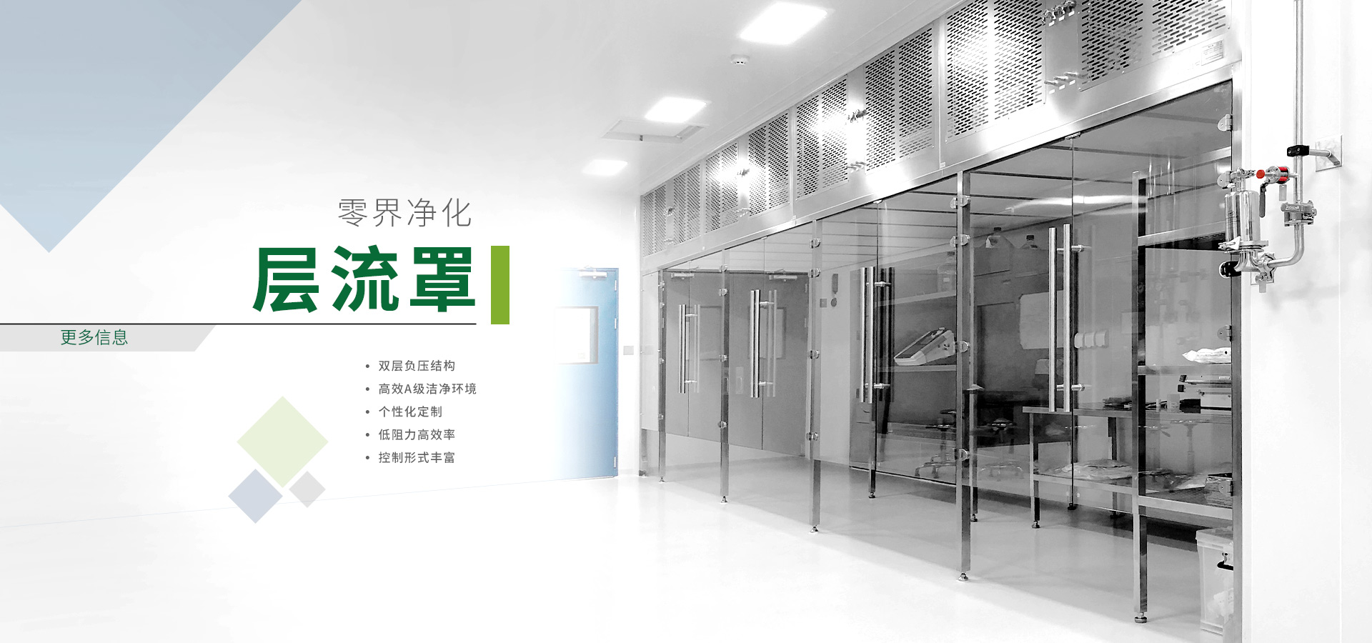 凈化設備可以提高局部潔凈度,可根據客戶使用場景進行個性化設計。主要產品有層流罩、負壓稱量罩、自凈傳遞窗、潔凈工作臺、FFU、VHP滅菌傳遞窗等。